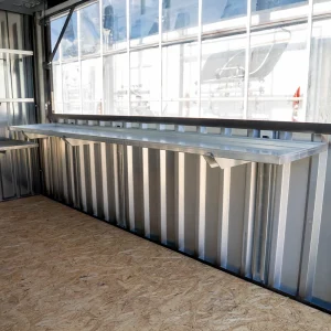 Disponemos de numerosos accesorios para nuestros contenedores. Ya sea nuestra barra de seguridad, estantes de 1 o 2 metros o la rampa de carga, nuestros contenedores se pueden complementar de muchas maneras.