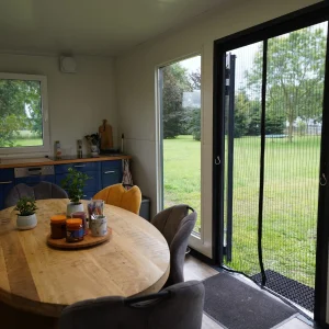 Descubre nuestro contenedor aislado versátil Helsinki, un espacio de 4×3 metros diseñado para adaptarse a múltiples necesidades. Ya sea para crear un área de trabajo dinámica, transformarlo en un salón de peluquería moderno o utilizarlo como solución de almacenamiento elegante en forma de oficina de jardín, el modelo Helsinki destaca por su flexibilidad. Más allá de su uso tradicional en obras y proyectos de construcción, este estudio de jardín se convierte fácilmente en una sala de reuniones acogedora o en un cómodo alojamiento compacto.