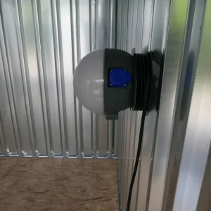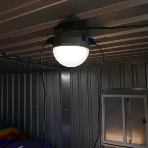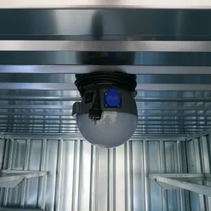 La lámpara está equipada con un cable de 5 metros. Además, dispone de dos enchufes de corriente de 230 voltios y puede fijarse en cualquier parte de nuestros contenedores gracias a su base magnética.